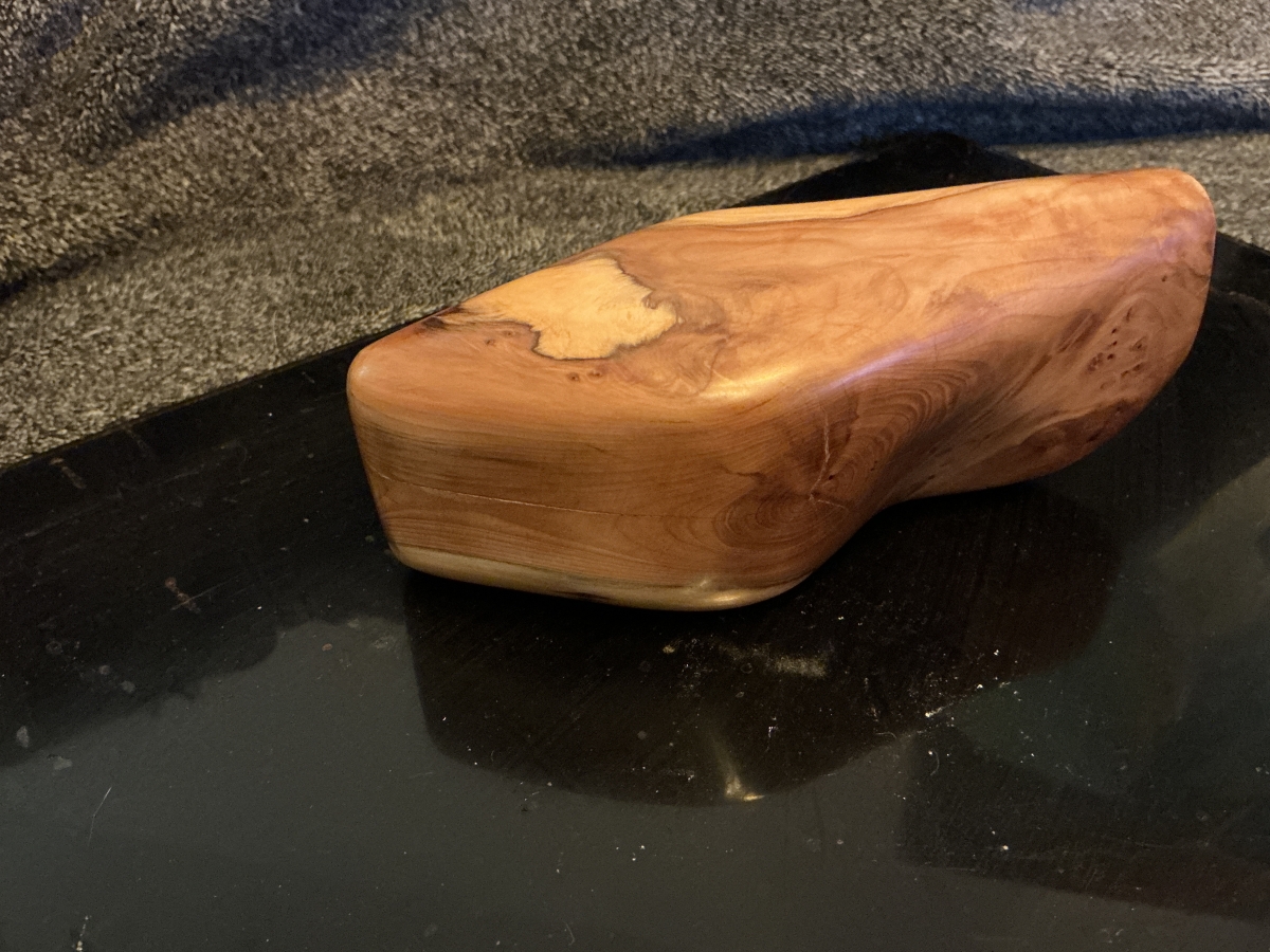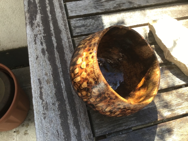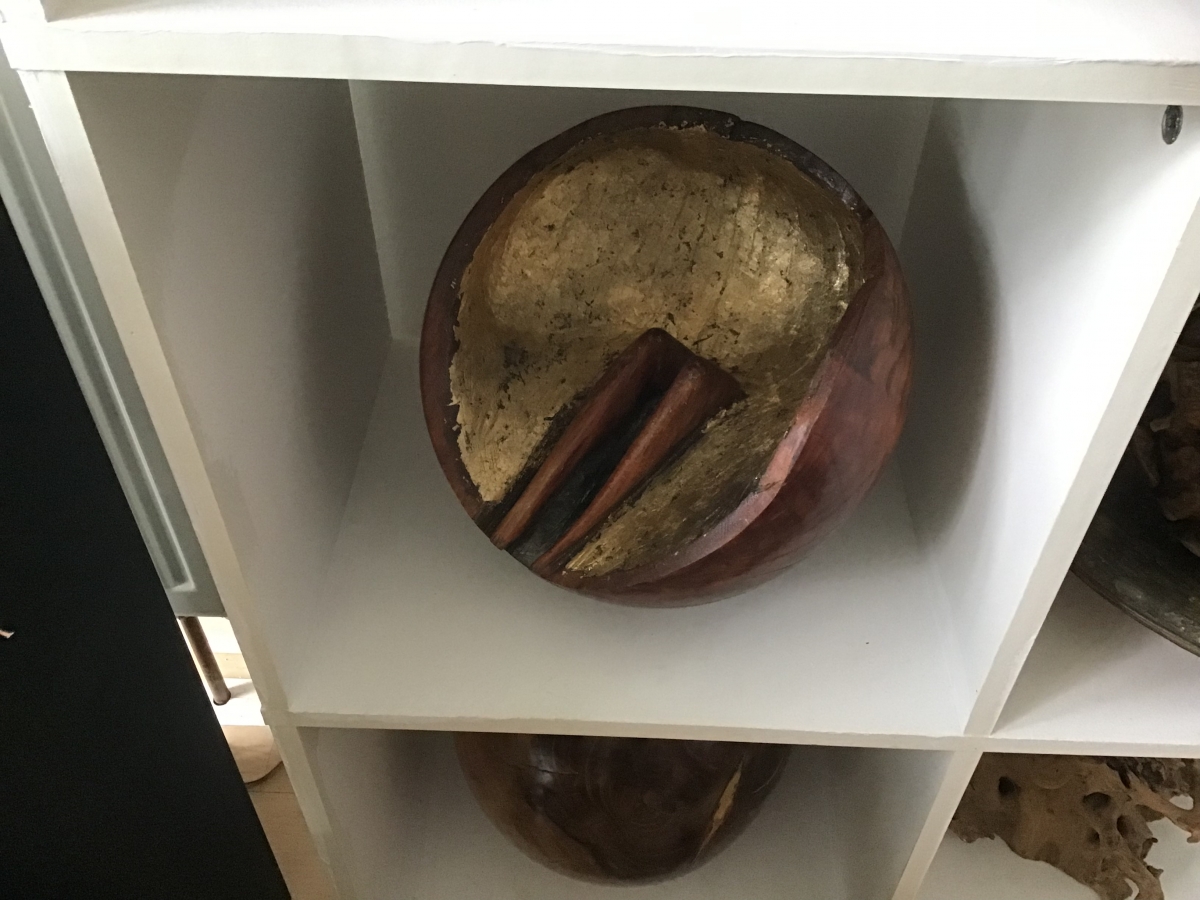 teilweise ausgehöhlt, innen mit Blattgold verziert außen geölt