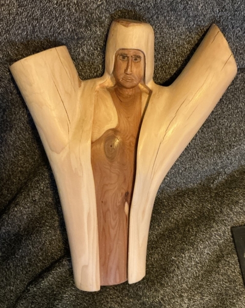 Die Frauenbeine waren bereits in der Wurzel und wurden nur durchs schnitzen freigelegt.