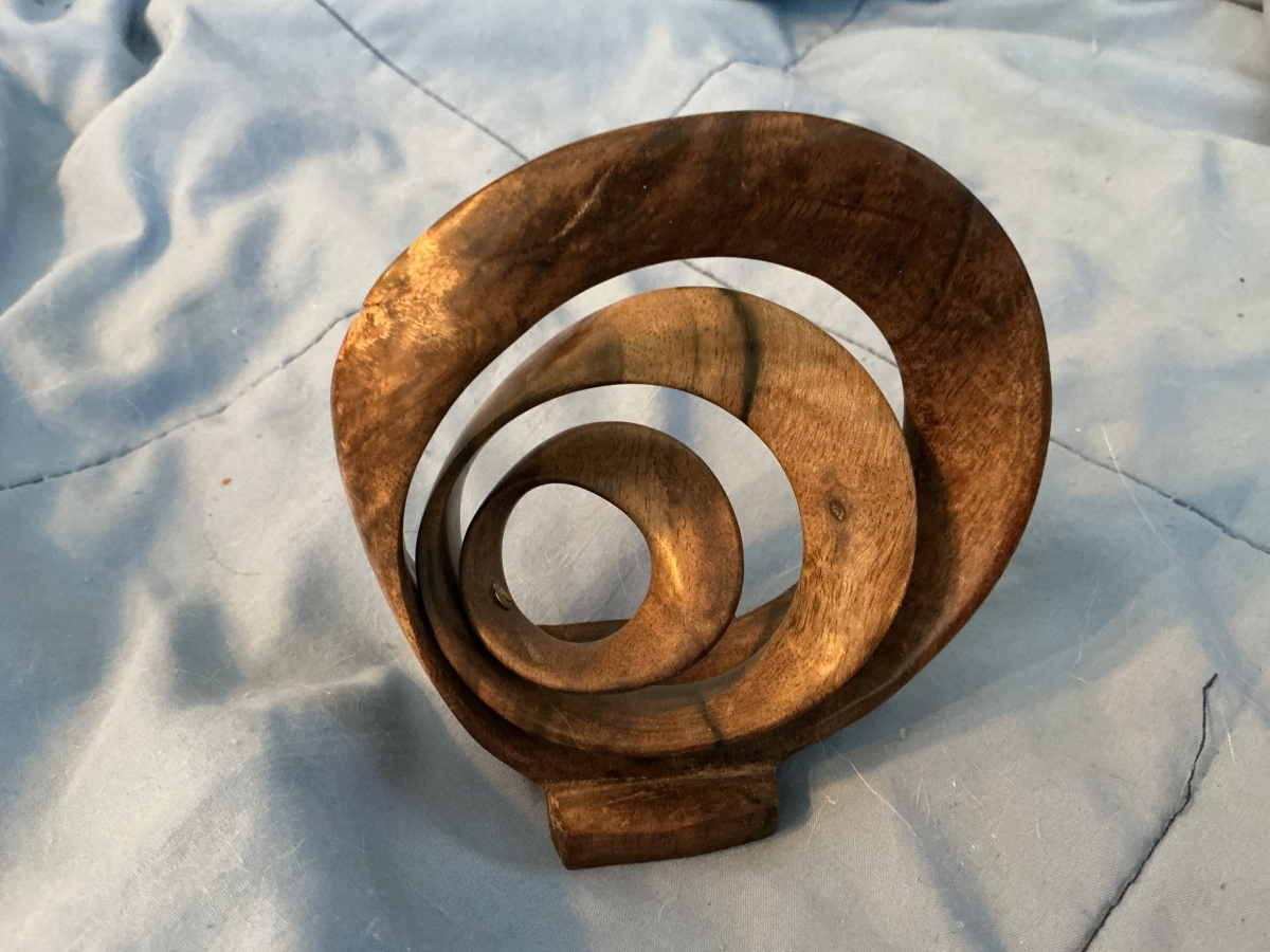 3 (drehbar) ineinander montierte Möbiusbänder aus Walnussholz